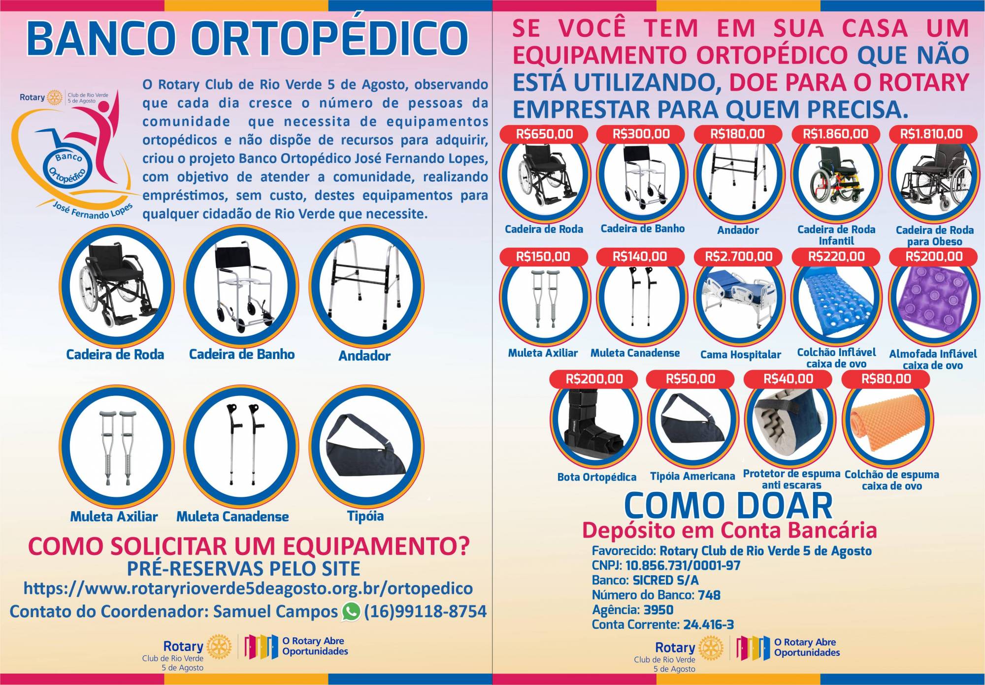 O Rotary Club de Rio Verde 5 de Agosto, observando que cada dia cresce número de pessoas da comunidade que necessita de equipamentos ortopédicos e não dispõe de recursos para adquirir, criou o projeto Banco Ortopédico José Fernando Lopes, com objetivo de atender a comunidade Rio verdense, realizando empréstimos, sem custo, destes equipamentos para qualquer cidadão de Rio Verde que necessite.