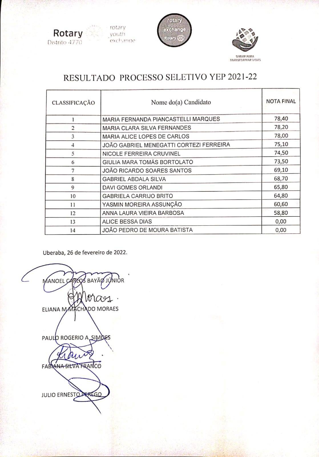 Segue a publicação do resultado final do Intercâmbio de Jovens. Abaixo, o link para download: