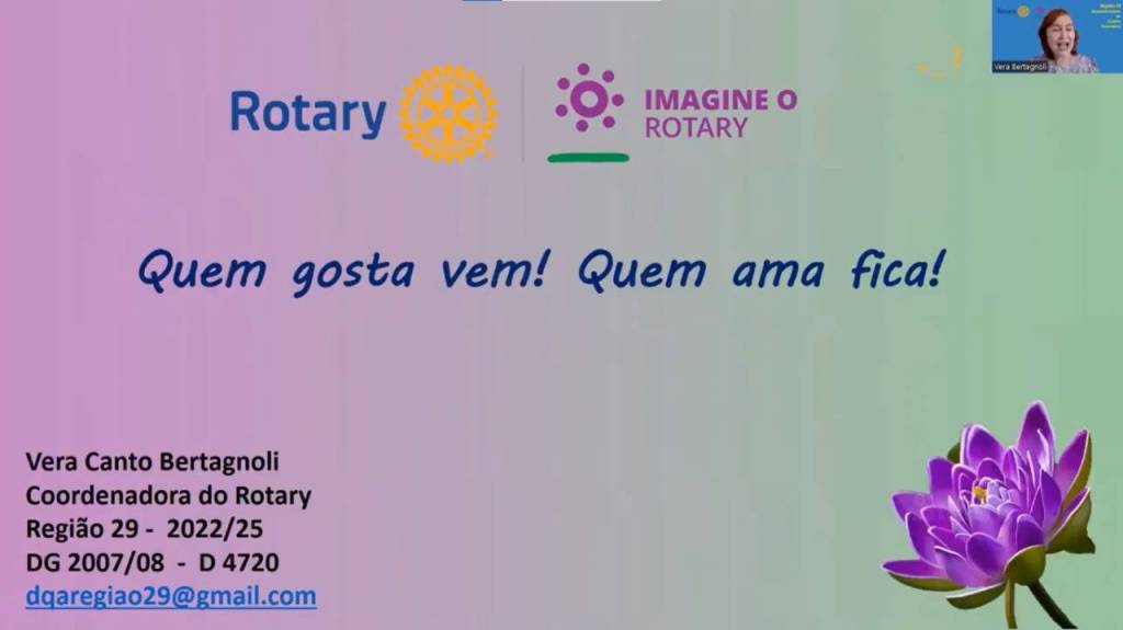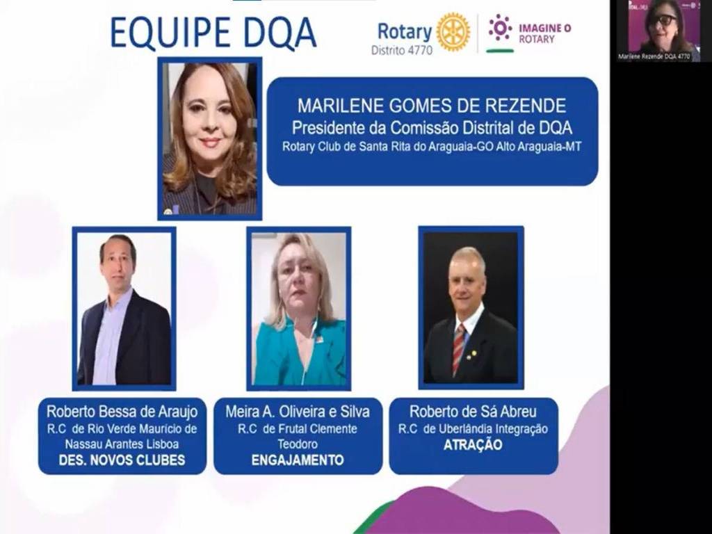 O dia 23 de julho de 2022 marcou a gestão 2022-23 com o primeiro Seminário para este ano rotário. Realizado na modalidade virtual, o Seminário do Desenvolvimento do Quadro Associativo contou com uma grande participação dos companheiros do Distrito 4770, chegando a mais de 150 participantes na sala do Zoom. Organizado pela Coordenadora Distrital de DQA Marilene Rezende e sua equipe, o Seminário foi de muito aprendizado e troca de informações. A Coordenadora de Rotary 2022-25, da Região 29, Vera Canto Bertagnolli, com o seu conhecimento, inspirou os presentes a desenvolver ainda mais os seus clubes e os seus quadros associativos. O tema Liberdade, Equidade e Inclusão foi colocado de forma sábia e eficiente pela Coordenadora da Comissão Distrital do DEI Núbia Ferreira. O Governador Paulo Simões se mostrou muito otimista com o resultado que motiva os clubes a imaginar e buscar novos caminhos para o crescimento do quadro associativo e fortalecimento das ações rotários pelo Distrito.