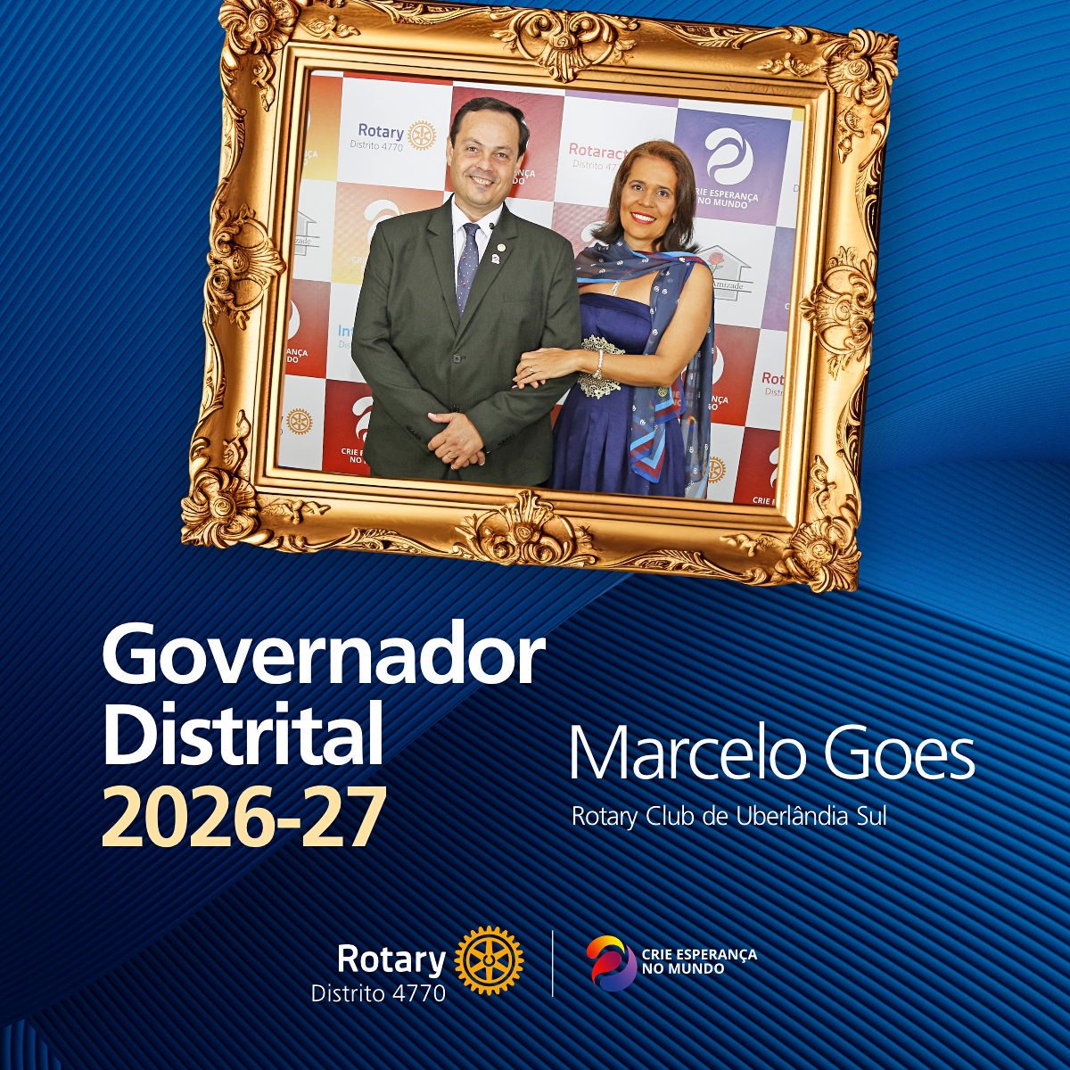 A Governadora do Distrito 4770 de Rotary International, Manuella Keiko Yano Freitas, informa a todos os membros do Distrito 4770 que foi declarado para o cargo de Governador Distrita 2026-27, o rotariano MARCELO DE CRISTO GÓES, associado representativo do Rotary Club de Uberlândia Sul.