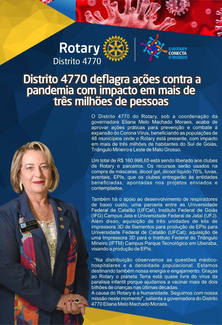Mensagem da Governadora 2019/2020 do Distrito 4770 a respeito do Projeto Distrito 4770 no combate ao coronavirus.
