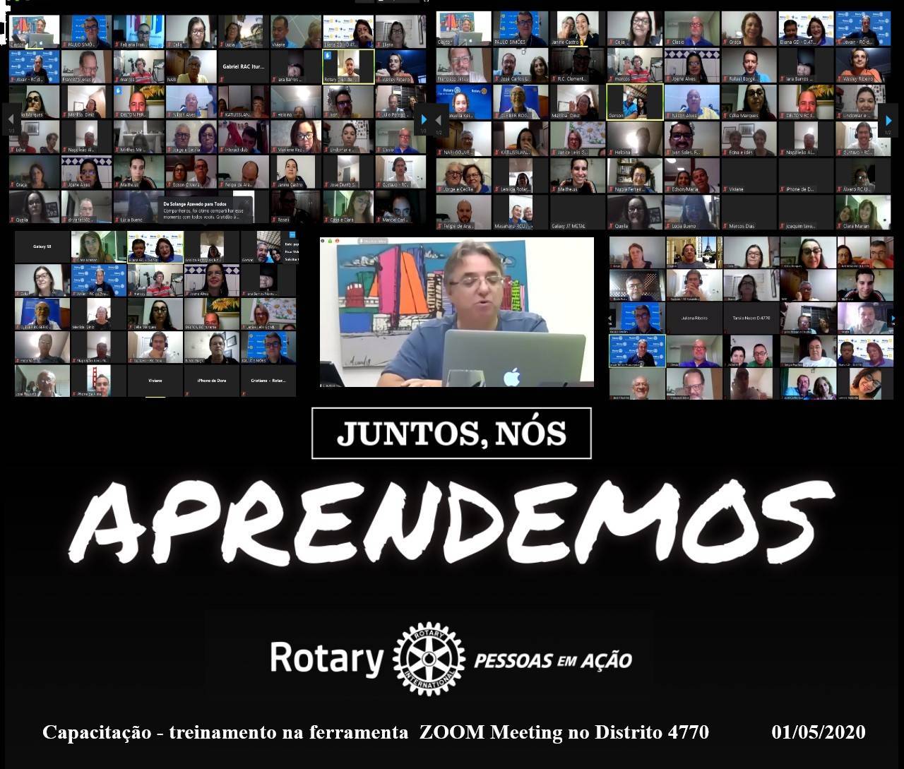 Mais de 120 rotarianos, Rotaractianos, Interactianos e damas da Casa da Amizade do Distrito 4770 comemoraram o Dia do Trabalho se capacitando na ferramenta ZOOM para fortalecer e ampliar as reuniões virtuais e eventos no distrito.